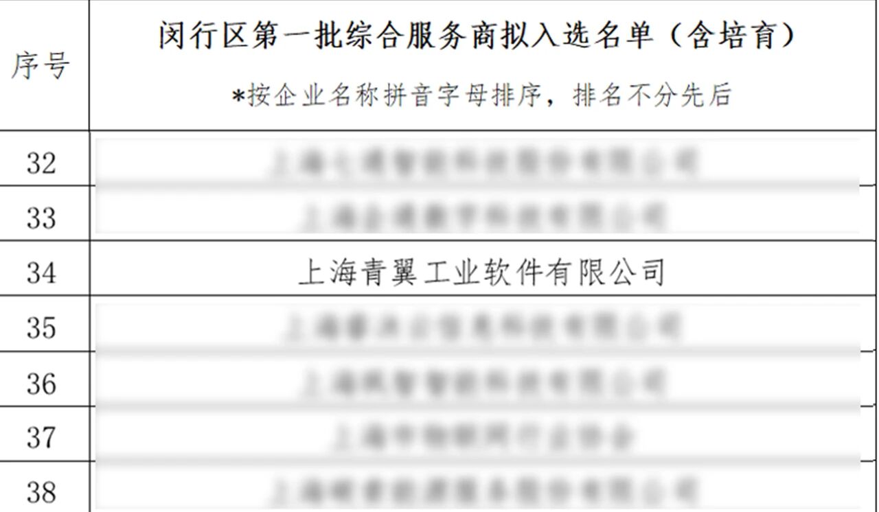 本次服务商遴选工作是闵行区深入贯彻落实国家及上海市关于加快中小企业数字化转型系列决策部署的重要举措。根据《关于做好2025年中小企业数字化转型城市试点工作的通知》(财办建〔2025〕20号)等相关文件要求,青翼工业软件经过严格的公开征集、现场答辩等环节,成果进入第一批拟入选名单。