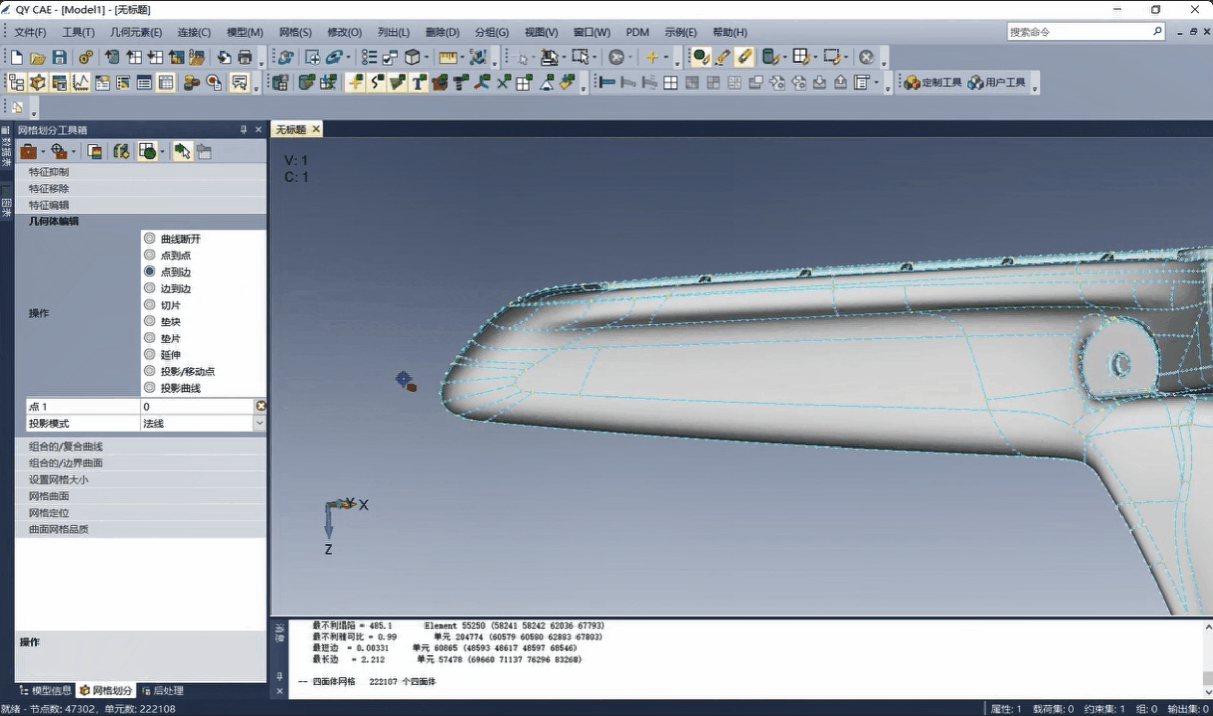 通过点到边拆分曲面。